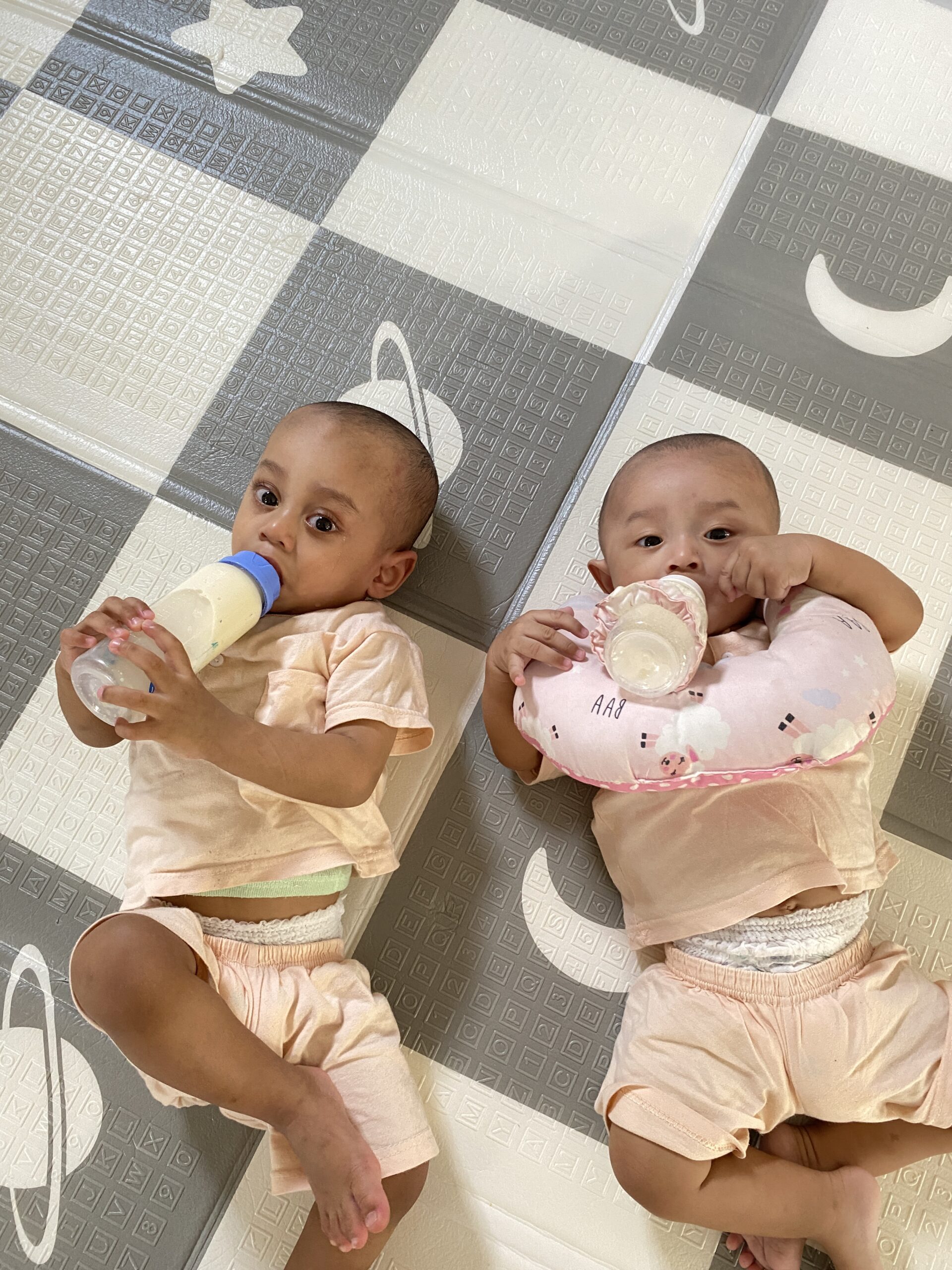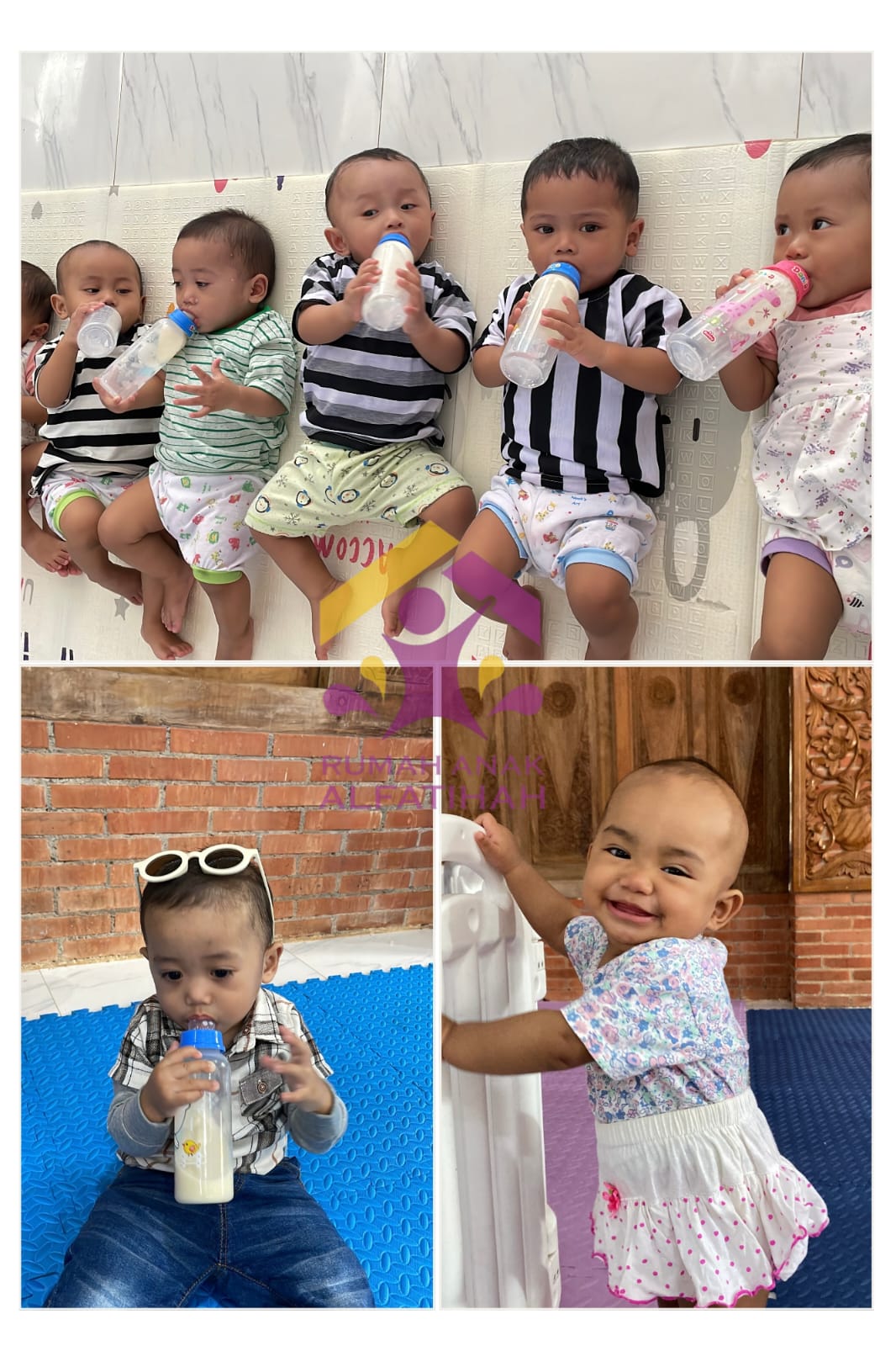 Setiap bayi di Rumah Anak Alfatihah memiliki kebutuhan susu yang berbeda-beda sesuai usia dan kondisi. Ukuran susu pun beragam, ada yang 1 kg, ada yang 400 g. Untuk 4 anak, 1 kardus 1 kg biasanya habis dalam 2–3 hari, sehingga kebutuhan susu setiap bulan mencapai sekitar 10–15 kardus agar semua anak tetap tumbuh sehat. Alhamdulillah, berkat dukungan Ayah, Bunda, Kakak, beberapa bayi sudah mulai merasakan manfaat nutrisi yang cukup untuk mendukung tumbuh kembang mereka.