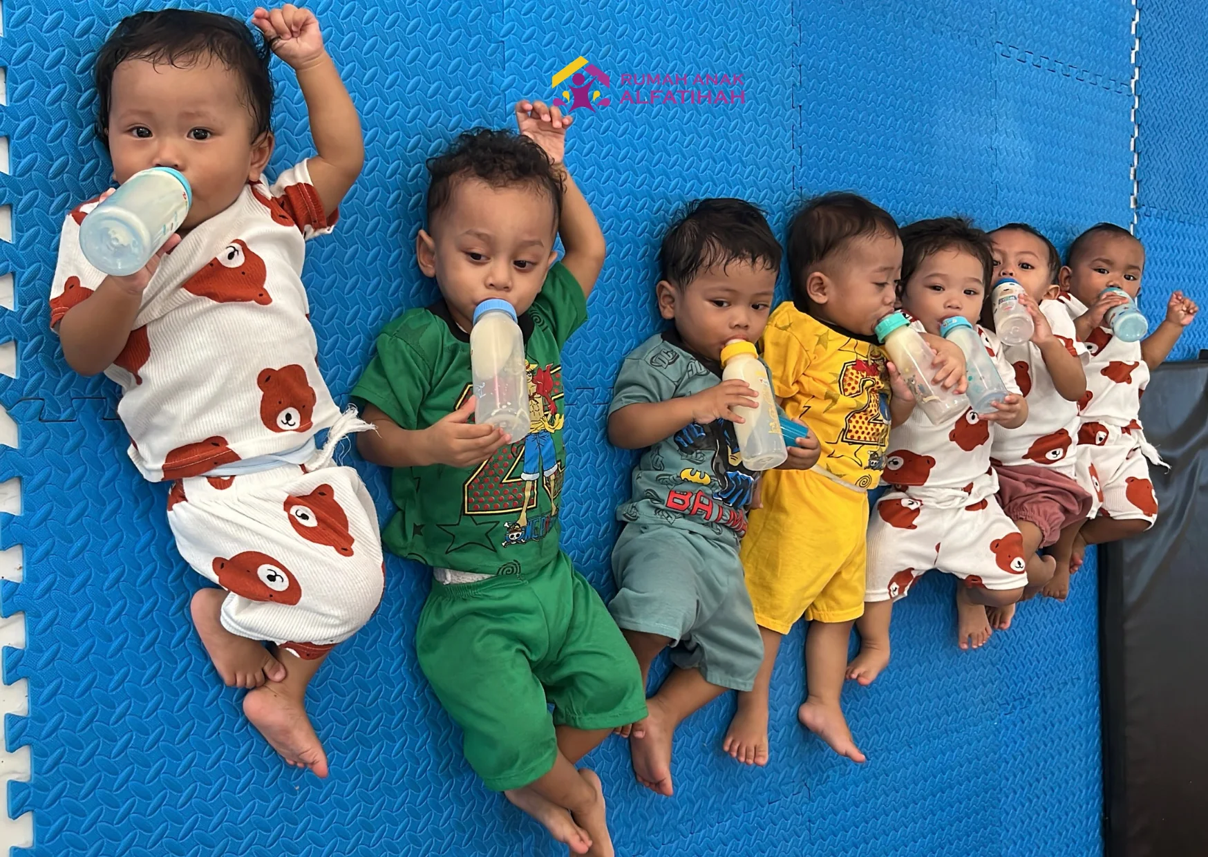 Saat ini, ada 11 anak di Rumah Anak Alfatihah yang tumbuh tanpa asupan ASI sejak lahir. Keseharian mereka kini diisi dengan canda tawa bersama para pengasuh dan botol susu yang menjadi sumber nutrisi utama mereka setiap hari.